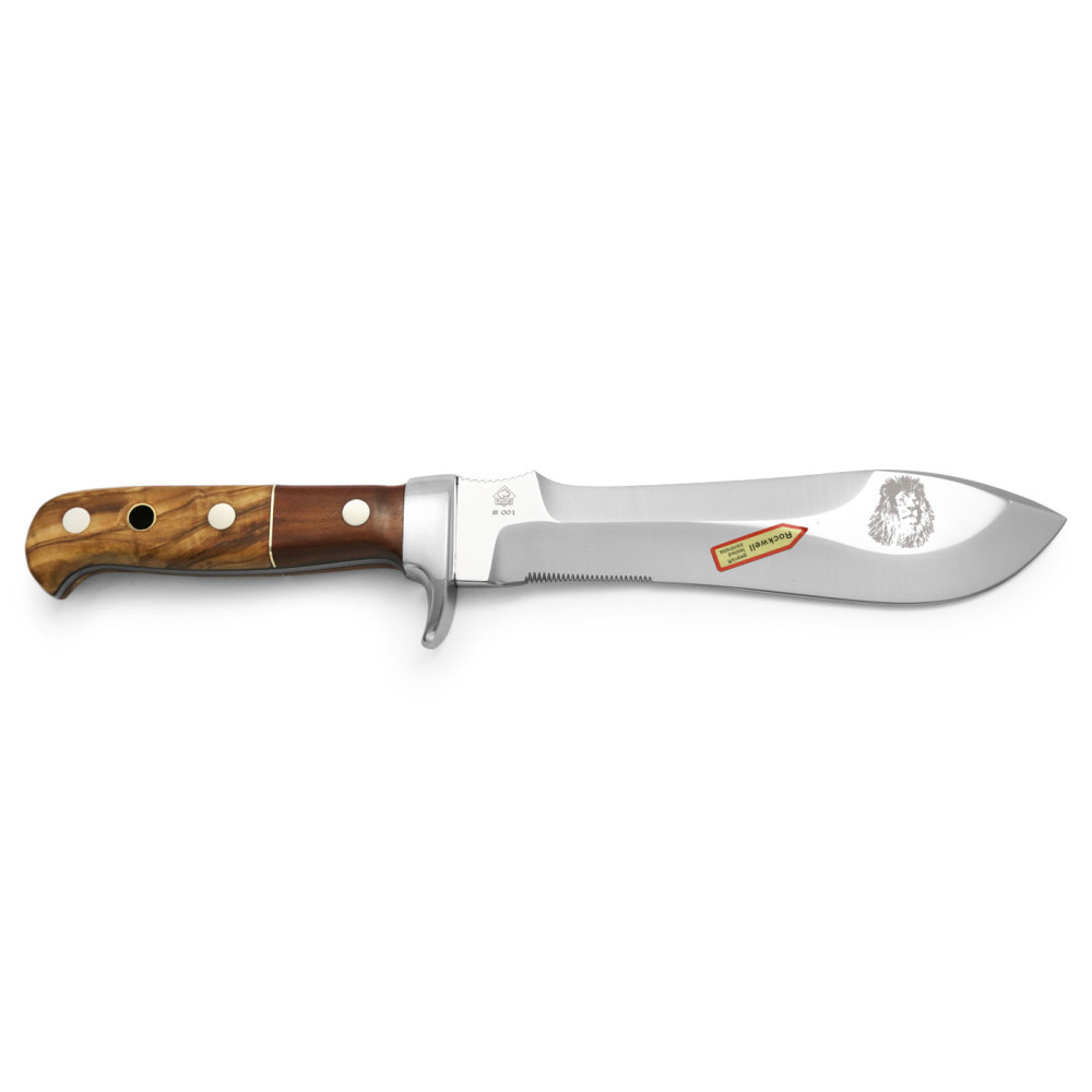 Robustní špička je dostatečně pevná, aby s ní bylo možné otevírat konzervy nebo různá víčka. Ve středu hřbetu čepele je vybroušeno sekerovité ostří pro hrubší práci, jako je štípání dříví nebo sekání kostí. Čepel má také praktické pilové ostří na zadní částí čepele pro řezání zelených pružných větví, rybí kůže nebo podobného materiálu s pevným povrchem.