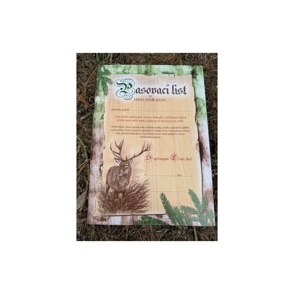 Pasovací list na lovce zvěře jelení